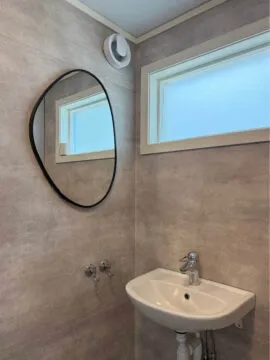 Nej, vi har ett antal campingstugor utan dusch och toalett och det ser du enkelt i stugmenyn.