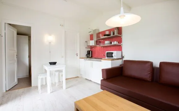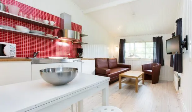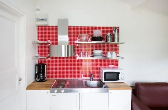 • Pentry med kokplattor, mikrovågsugn, kaffebryggare, kylskåp och diskbänk