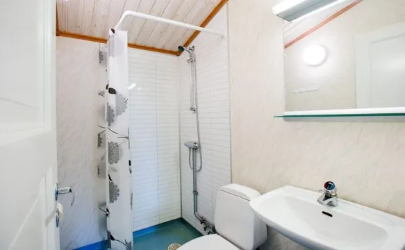 Nej, vi har ett antal campingstugor utan dusch och toalett och det ser du enkelt i stugmenyn.