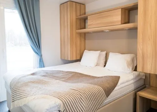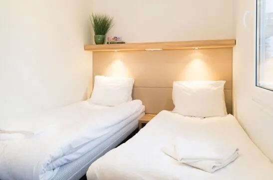 The lovely 2-bedroom cottage is adapted for the disabled. Jungfruskär has a large bathroom, 2 bedrooms, and a lovely kitchen/living room. In bedroom 1 you will find a double bed and in bedroom 2 there are two single beds. Beds 5 and 6 are in the sofa bed in the living room. Jungfruskär is located by our large playground and is perfect for families with children. Pets are not allowed in this cottage group.