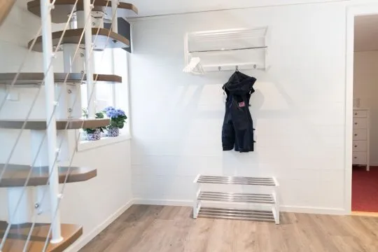 Lovely family house by the playground. 8 beds, 65 square meters. Two-story house. Upstairs (steep stairs) 1 living room/bedroom with sofa bed, TV 34 inches, chest of drawers and 1 double bed (divisible), smaller room with two single beds without window. Downstairs, bedroom with 1 double bed (divisible). Kitchen table with 8 chairs. Kitchen area with stove, oven, sink, coffee maker, fridge-freezer and microwave. TV 24 inch. Shower, WC. Veranda with garden furniture. Only rented out Sunday-Thursday or Thursday-Sunday, week 28-31.
