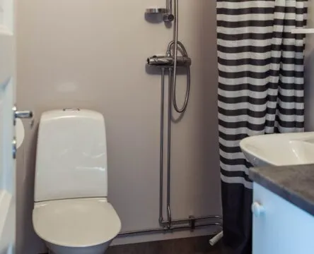 No, we have a number of camping cabins without shower and toilet and you can easily see that in the cabin menu.