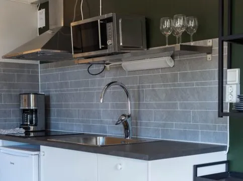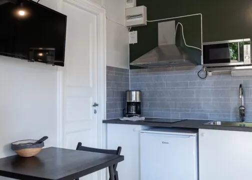 Tallö is close to Västervik Resort’s golf club and the Skärgårdsvillan restaurant. The cottage has one bedroom with a bunk bed. In the living room, there are two beds in a sofa bed. Kitchenette with hotplates, sink, coffee maker, refrigerator and microwave. Shower and WC. TV. Large veranda with garden furniture.